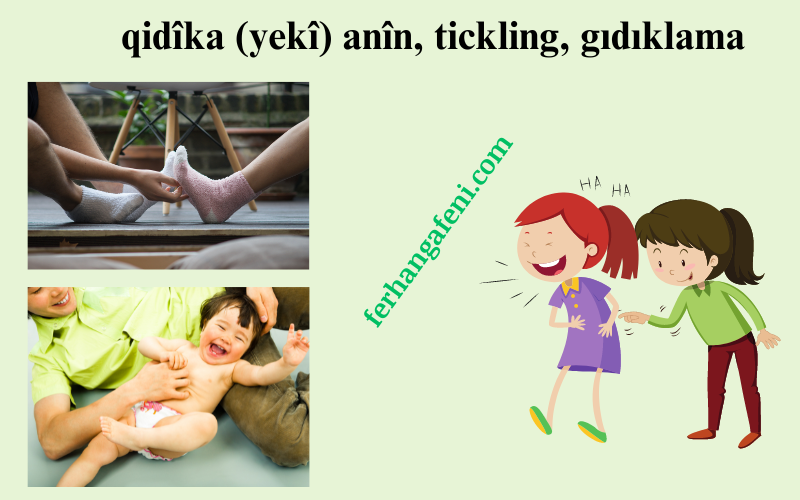qidîka (yekî) anîn, diqdiqandin, qidikandin, qidqidandin, qilî kirin, dixdixandin, tixtixandin, xuritîka (yekî) anîn tê bikaranîn. Divê ji bo vê kelîmeyî nîqaş were kirin.